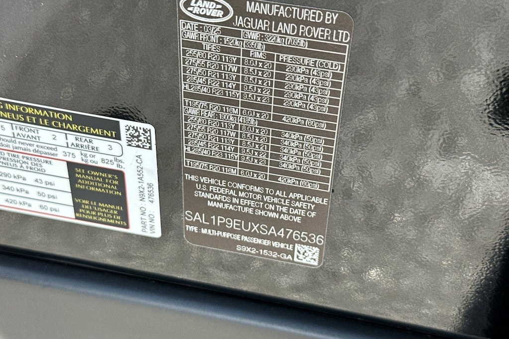 Trunk/Hatch Auto-Latch, Trip Computer, Transmission: 8-Speed Automatic, Transmission w/Driver Selectable Mode and CommandShift Sequential Shift Control w/Steering Wheel Controls, Towing Equipment -inc: Trailer Sway Control, Tires: 21", Tire Specific Low Tire Pressure Warning, Terrain Response 2 Auto Electronic Stability Control (ESC) And Roll Stability Control (RSC), Tailgate/Rear Door Lock Included w/Power Door Locks, Speed Sensitive Rain Detecting Variable Intermittent Wipers w/Heated Wiper Park.