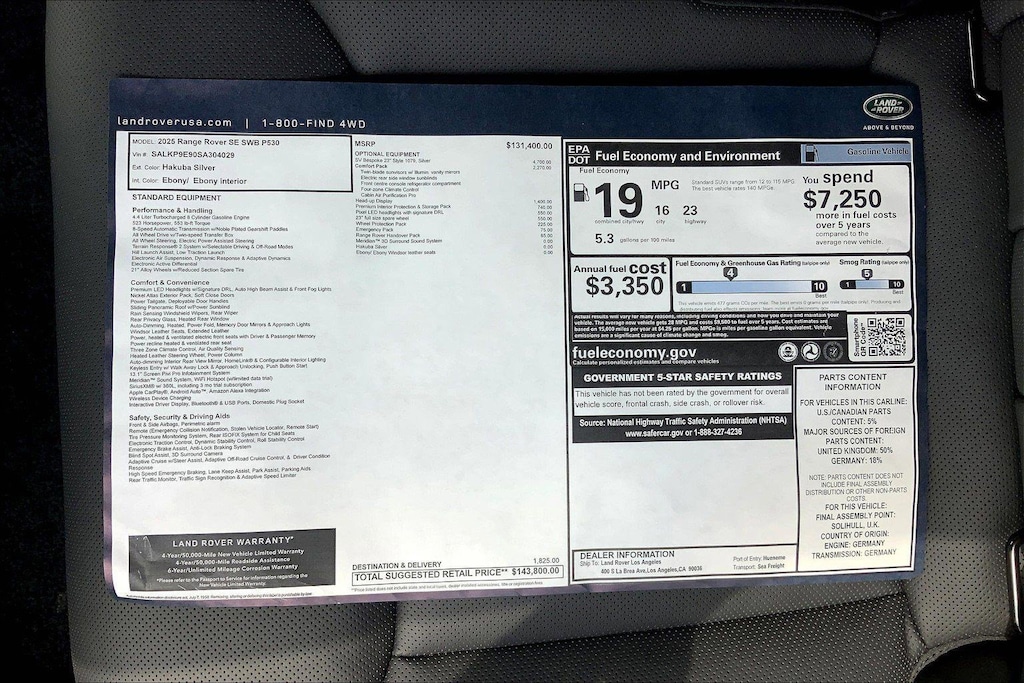 Plus government fees and taxes, any finance charges, any dealer document processing charge ($85), any electronic filing charge, and any emission testing charge. Any new Land Rover vehicle prices include a destination charge.