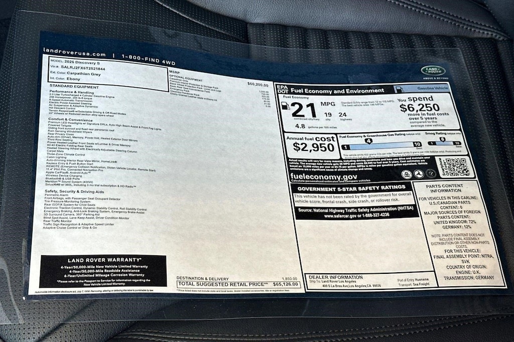 Plus government fees and taxes, any finance charges, any dealer document processing charge ($85), any electronic filing charge, and any emission testing charge. Any new Land Rover vehicle prices include a destination charge.