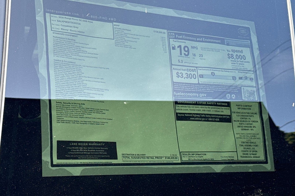 Plus government fees and taxes, any finance charges, any dealer document processing charge ($85), any electronic filing charge, and any emission testing charge. Any new Land Rover vehicle prices include a destination charge.