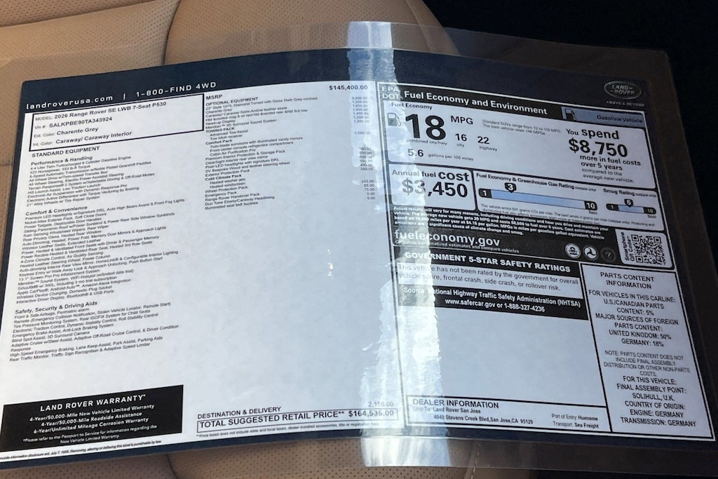 New 2026 Range Rover SE LWB 7-Seats / V8