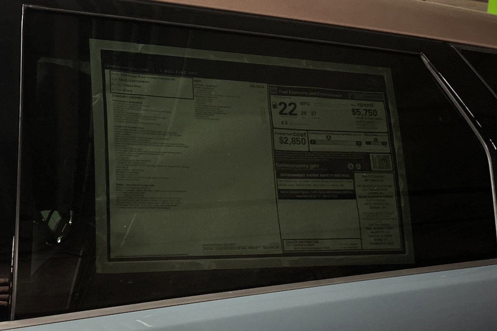 Plus government fees and taxes, any finance charges, any dealer document processing charge ($85), any electronic filing charge, and any emission testing charge. Any new Land Rover vehicle prices include a destination charge.